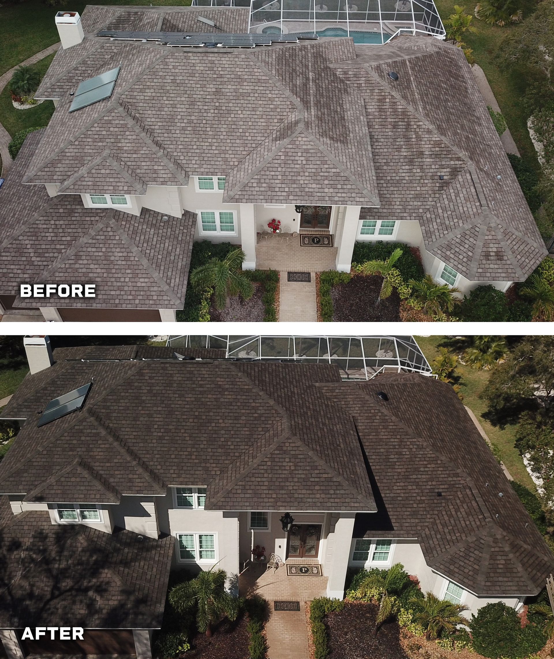 Every roof receives Neutralite to neutralize cleaning chemicals, Plant Hero to protect landscaping, and Shingle Hero to restore the shingles. This creates a clean surface and accurate saturation.